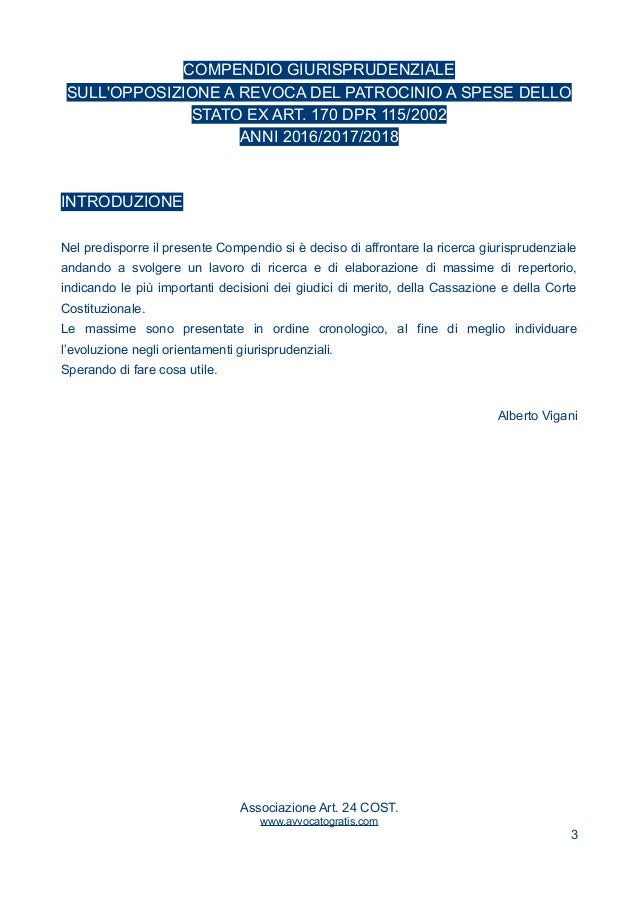 leggi l'articolo completo qui : https://slidetodoc.com/corso-di-formazione-e-aggiornamento-personale-amministrativo-giudiziario-3/ Cassazione fondato su tre motivi. 112, 113 dpr 115/2002 , in relazione all'art.360 comma 1 n.3 c.p.c., per avere erroneamente la corte territoriale ritenuto che, avverso il provvedimento di revoca del gratuito patrocinio per sopravvenuta modifica delle condizioni reddituali, debba proporsi ricorso per cassazione e non opposizione ai sensi. Sempre più spesso il ricorso in opposizione ex art.